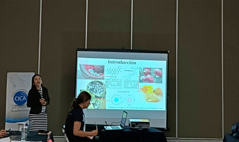 Su trabajo, titulado “Labiales elaborados con productos del nopal; laca carmín, colorante y aceites obtenidos en la tuna”, fue dado a conocer durante el 12° Congreso Interdisciplinario de Cuerpos Académicos 2025 (CICA). La propuesta combina pigmentos naturales de la tuna roja, la grana cochinilla y aceites de semilla de tuna, obteniendo un cosmético rico en antioxidantes, especialmente vitamina E, que además de dar color protege y cuida la piel.